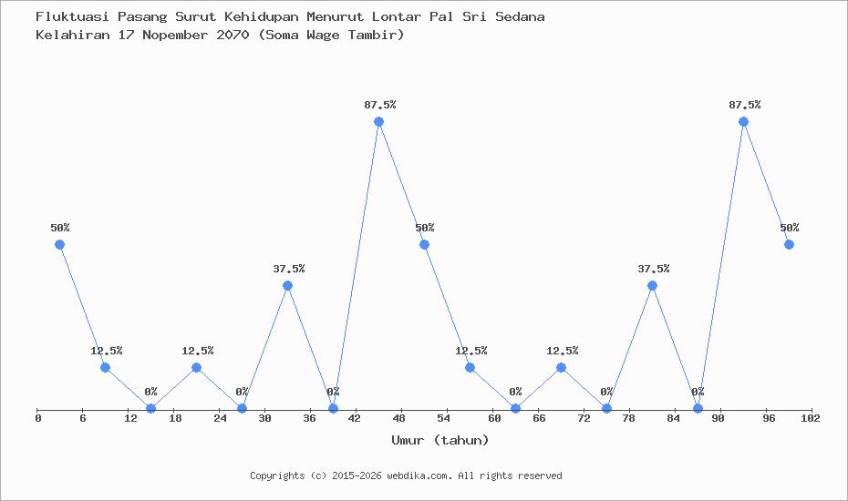 Menurut pustaka leluhur Pal Sri Sedana, Perubahan nasib, rejeki, dan kebahagiaan hidup seseorang terjadi setiap 6 tahun. Anda yang lahir pada hari Senin, 17 Nopember 2070 (Soma Wage Tambir), pasang surut perjalanan kehidupan Anda diprediksi sampai umur 48 tahun. Apabila umur Anda melebihi 48 tahun, maka tahun ke 49-54 dan selanjutnya, fluktuasi kehidupan Anda kembali lagi ke awal, yaitu umur 0-6 tahun, begitu seterusnya.