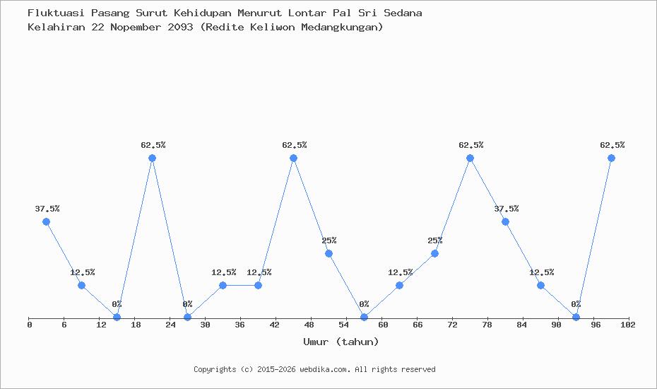 Menurut pustaka leluhur Pal Sri Sedana, Perubahan nasib, rejeki, dan kebahagiaan hidup seseorang terjadi setiap 6 tahun. Anda yang lahir pada hari Minggu, 22 Nopember 2093 (Redite Keliwon Medangkungan), pasang surut perjalanan kehidupan Anda diprediksi sampai umur 78 tahun. Apabila umur Anda melebihi 78 tahun, maka tahun ke 79-84 dan selanjutnya, fluktuasi kehidupan Anda kembali lagi ke awal, yaitu umur 0-6 tahun, begitu seterusnya.