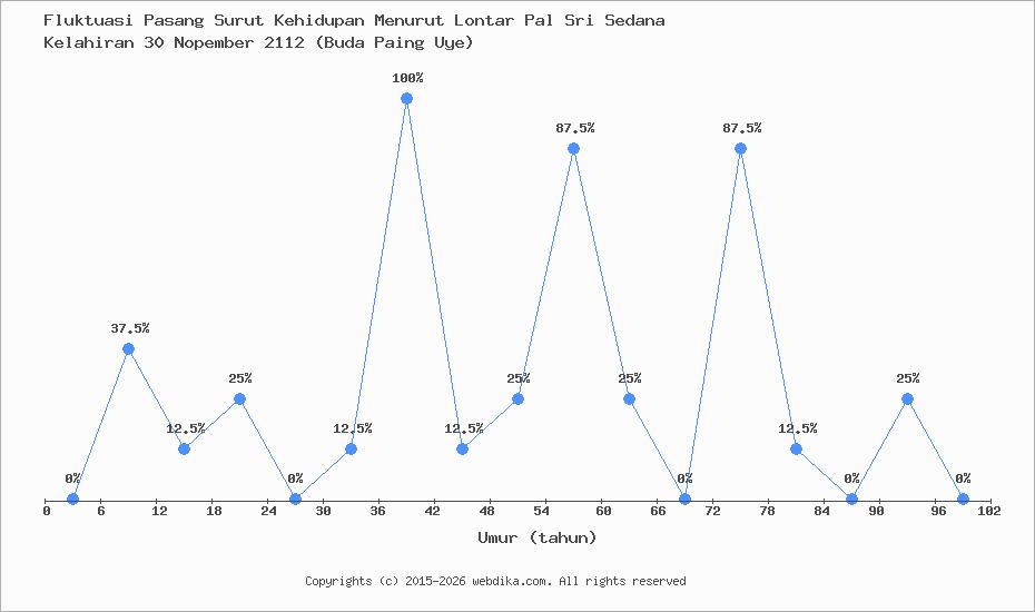 Menurut pustaka leluhur Pal Sri Sedana, Perubahan nasib, rejeki, dan kebahagiaan hidup seseorang terjadi setiap 6 tahun. Anda yang lahir pada hari Rabu, 30 Nopember 2112 (Buda Paing Uye), pasang surut perjalanan kehidupan Anda diprediksi sampai umur 96 tahun. Apabila umur Anda melebihi 96 tahun, maka tahun ke 97-102 dan selanjutnya, fluktuasi kehidupan Anda kembali lagi ke awal, yaitu umur 0-6 tahun, begitu seterusnya.