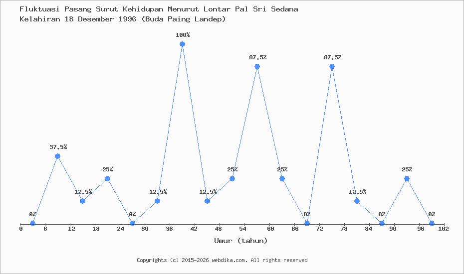Menurut pustaka leluhur Pal Sri Sedana, Perubahan nasib, rejeki, dan kebahagiaan hidup seseorang terjadi setiap 6 tahun. Anda yang lahir pada hari Rabu, 18 Desember 1996 (Buda Paing Landep), pasang surut perjalanan kehidupan Anda diprediksi sampai umur 96 tahun. Apabila umur Anda melebihi 96 tahun, maka tahun ke 97-102 dan selanjutnya, fluktuasi kehidupan Anda kembali lagi ke awal, yaitu umur 0-6 tahun, begitu seterusnya.