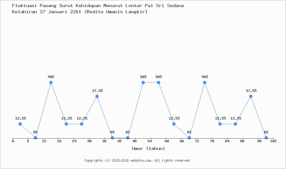 Menurut pustaka leluhur Pal Sri Sedana, Perubahan nasib, rejeki, dan kebahagiaan hidup seseorang terjadi setiap 6 tahun. Anda yang lahir pada hari Minggu, 27 Januari 2261 (Redite Umanis Langkir), pasang surut perjalanan kehidupan Anda diprediksi sampai umur 60 tahun. Apabila umur Anda melebihi 60 tahun, maka tahun ke 61-66 dan selanjutnya, fluktuasi kehidupan Anda kembali lagi ke awal, yaitu umur 0-6 tahun, begitu seterusnya.