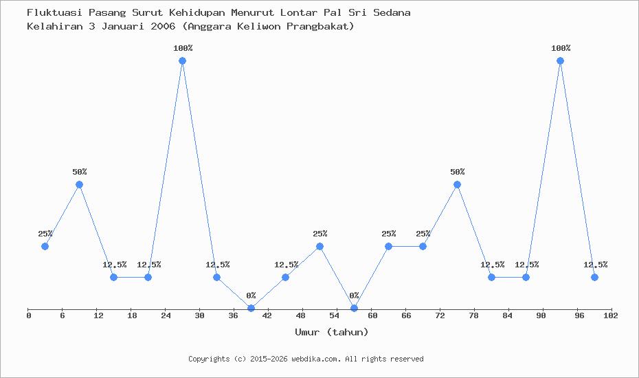 Menurut pustaka leluhur Pal Sri Sedana, Perubahan nasib, rejeki, dan kebahagiaan hidup seseorang terjadi setiap 6 tahun. Anda yang lahir pada hari Selasa, 3 Januari 2006 (Anggara Keliwon Prangbakat), pasang surut perjalanan kehidupan Anda diprediksi sampai umur 66 tahun. Apabila umur Anda melebihi 66 tahun, maka tahun ke 67-72 dan selanjutnya, fluktuasi kehidupan Anda kembali lagi ke awal, yaitu umur 0-6 tahun, begitu seterusnya.