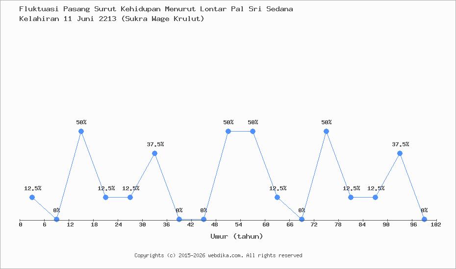 Menurut pustaka leluhur Pal Sri Sedana, Perubahan nasib, rejeki, dan kebahagiaan hidup seseorang terjadi setiap 6 tahun. Anda yang lahir pada hari Jumat, 11 Juni 2213 (Sukra Wage Krulut), pasang surut perjalanan kehidupan Anda diprediksi sampai umur 60 tahun. Apabila umur Anda melebihi 60 tahun, maka tahun ke 61-66 dan selanjutnya, fluktuasi kehidupan Anda kembali lagi ke awal, yaitu umur 0-6 tahun, begitu seterusnya.