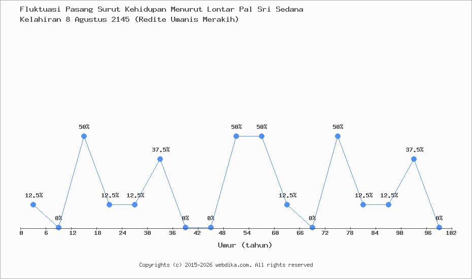Menurut pustaka leluhur Pal Sri Sedana, Perubahan nasib, rejeki, dan kebahagiaan hidup seseorang terjadi setiap 6 tahun. Anda yang lahir pada hari Minggu, 8 Agustus 2145 (Redite Umanis Merakih), pasang surut perjalanan kehidupan Anda diprediksi sampai umur 60 tahun. Apabila umur Anda melebihi 60 tahun, maka tahun ke 61-66 dan selanjutnya, fluktuasi kehidupan Anda kembali lagi ke awal, yaitu umur 0-6 tahun, begitu seterusnya.