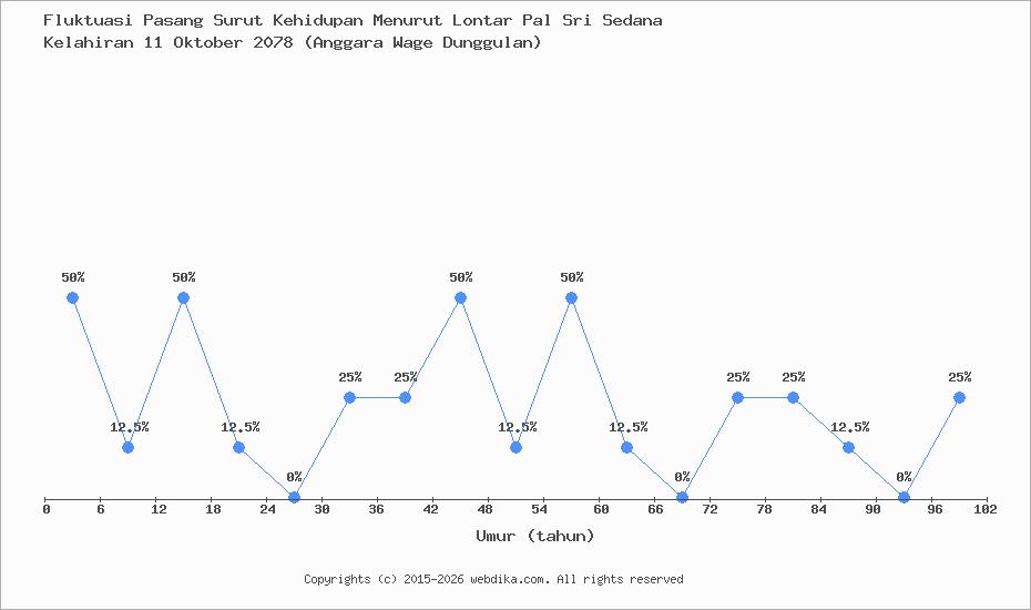 Menurut pustaka leluhur Pal Sri Sedana, Perubahan nasib, rejeki, dan kebahagiaan hidup seseorang terjadi setiap 6 tahun. Anda yang lahir pada hari Selasa, 11 Oktober 2078 (Anggara Wage Dunggulan), pasang surut perjalanan kehidupan Anda diprediksi sampai umur 42 tahun. Apabila umur Anda melebihi 42 tahun, maka ketika umur 43-48 dan selanjutnya, fluktuasi kehidupan Anda kembali lagi ke awal, yaitu umur 0-6 tahun, begitu seterusnya.