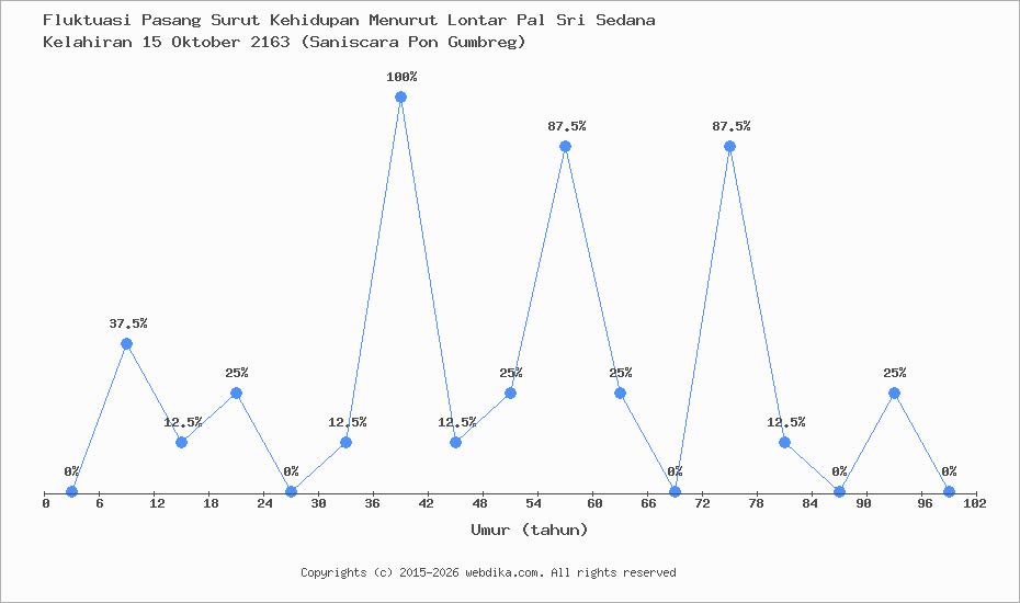 Menurut pustaka leluhur Pal Sri Sedana, Perubahan nasib, rejeki, dan kebahagiaan hidup seseorang terjadi setiap 6 tahun. Anda yang lahir pada hari Sabtu, 15 Oktober 2163 (Saniscara Pon Gumbreg), pasang surut perjalanan kehidupan Anda diprediksi sampai umur 96 tahun. Apabila umur Anda melebihi 96 tahun, maka tahun ke 97-102 dan selanjutnya, fluktuasi kehidupan Anda kembali lagi ke awal, yaitu umur 0-6 tahun, begitu seterusnya.